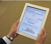 さらに、最近はクラウド・コンピューティングと携帯端末を利用する事例も増えてきました。計測データをクラウドに転送して、タブレット型コンピュータやスマートフォンに表示するシステムです。将来的にはiPadやスマートフォンで工場設備を操作することが一般的になってくるかもしれません。軽くて持ち運びできるし、普通のPCよりずっと起動が早い。それにこれで操作するって何かかっこいいでしょ(笑)。